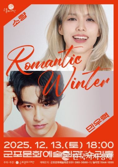 한국시사경제 기동취재팀 | 군포문화재단은 오는 12월 13일 오후 6시, 군포문화예술회관 수리홀에서 연말 기획공연 “소향×민우혁 콘서트 'Romantic Winter'”를 개최한다.