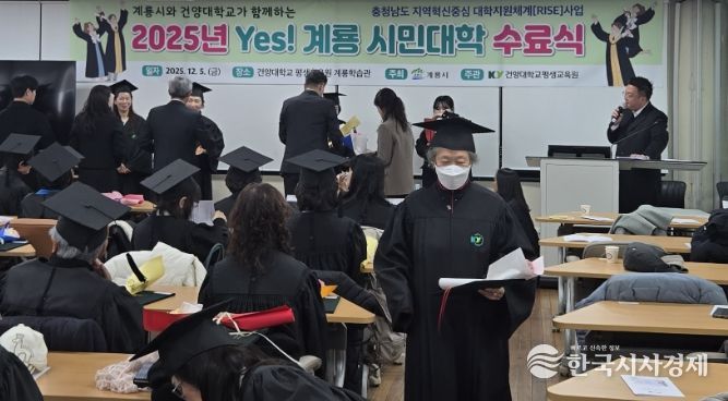 한국시사경제 김태훈 기자 | 계룡시는 지난 5일 건양대와 충청남도 지역혁신중심 대학지원체계(RISE)사업의 일환으로 운영한, ‘2025년도 Yes! 계룡 시민대학 수료식’을 건양대 평생교육원에서 성황리에 개최했다고 밝혔다.