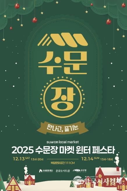 한국시사경제 기동취재팀 | 수원문화재단 문화도시센터가 오는 13일과 14일 복합문화공간 111CM에서‘2025 수문장 마켓 윈터 페스타’를 개최한다.