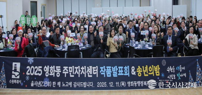 한국시사경제 기동취재팀 | 수원시 장안구 영화동은 지난 11일, 동 행정복지센터 3층 대강당에서 한 해 동안 갈고닦은 실력을 뽐내고 올 한 해를 돌아보는 ‘2025 영화동 주민자치센터 작품발표회 & 송년의 밤’을 개최했다.