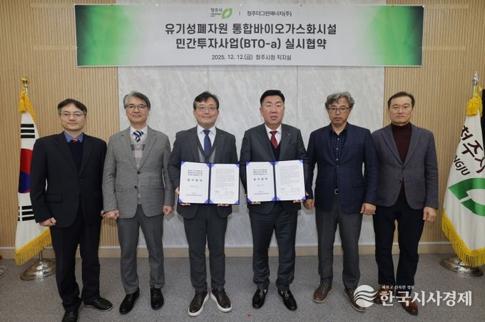 한국시사경제 오영주 기자 | 청주시는 청주공공하수처리시설에 유기성폐자원 통합바이오가스화시설을 건축하는 사업 추진을 위해 12일 사업시행자인 (가칭)청주더그린에너지주식회사와 실시협약을 체결했다.