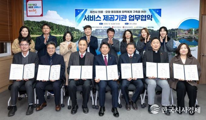 한국시사경제 충북취재본부 | 제천시는 16일 시청 시장실에서 관내 사회복지기관 및 단체와 함께 의료·요양 통합돌봄사업 추진을 위한 업무협약을 체결하고 제천형 통합돌봄을 본격 추진한다고 밝혔다.