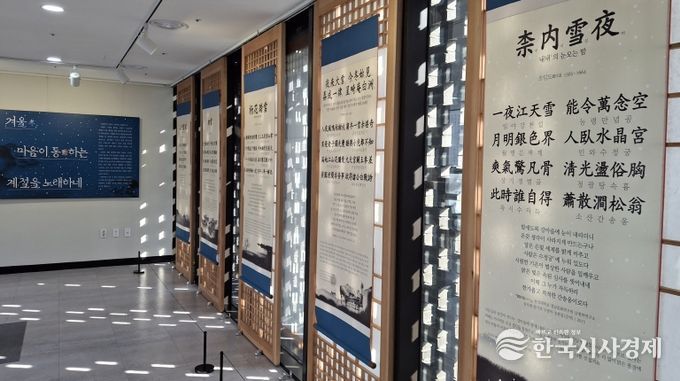 이번 특별전은 겨울을 주제로 한 한시를 족자 형태로 전시하여 선보이는 자리로, 대중에게 잘 알려진 역사 속 문장가들의 작품을 통해 한시라는 장르에 대한 거리감을 좁히고 관람객들에게 친근하게 다가가기 위해 기획됐다.