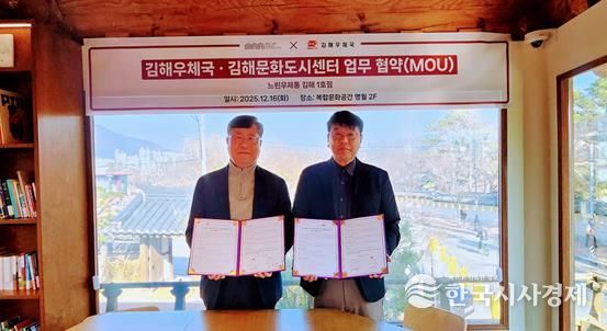 한국시사경제 노승선 기자 | (재)김해문화관광재단과 김해우체국은 지난 12월 16일 김해한옥체험관 내 복합문화공간 ‘명월’에서 느린우체통 김해 1호점 조성 및 지역 문화협력사업 추진을 위한 업무협약을 체결했다.