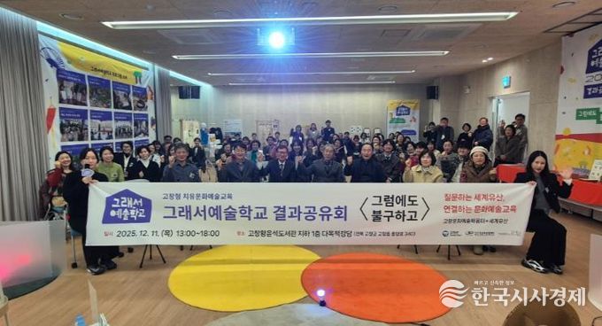 한국시사경제 김숙영 기자 | 고창문화도시센터가 고창황윤석도서관 다목적강당에서 세계유산 기반 치유문화예술교육 사업의 성과를 공유하는 ‘2025 그래서예술학교 결과공유회’를 열었다.