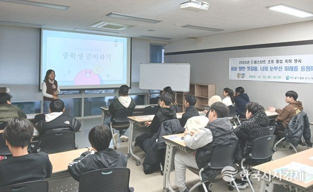 이번 초등 졸업 행사에서는 명호중학교 상담교사 천숙 강사를 초빙하여 ‘슬기로운 예비 중학교 생활’이라는 주제로 중학교 진학에 도움이 되는 강의를 진행하고, 초등 졸업 선물로 10만 원 상당의 상품권을 지원했다.
