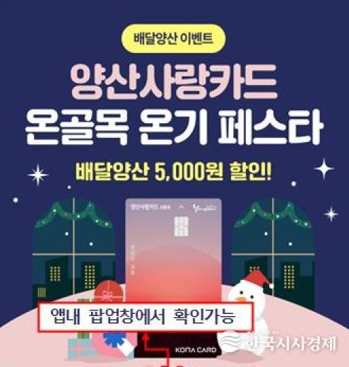이 행사는 시민들의 연말 소비를 양산사랑카드 사용으로 유도하여 소상공인 매출 증대에 실질적인 도움을 줄 것으로 기대된다. 먼저, 오는 12월 20일(토)부터 25일(목)까지 6일간 양산사랑카드 자체 배달 앱인 ‘배달양산’ 이용자를 대상으로 온기쿠폰을 지급한다.
