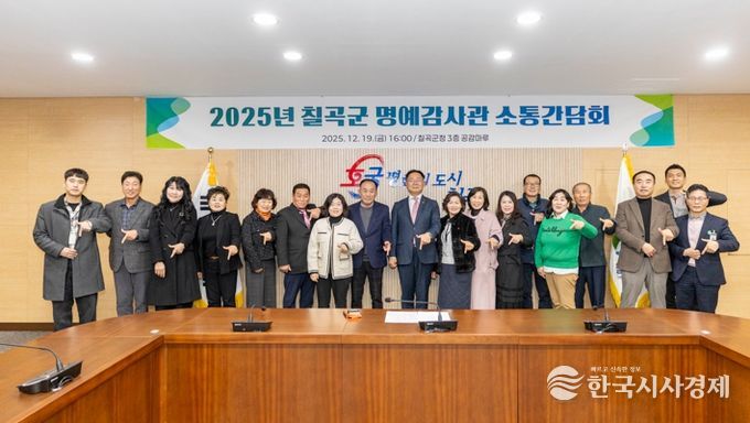 한국시사경제 노승선 기자 | 칠곡군은 지난 19일 군청 3층 공감마루에서 군민이 참여하는 열린 감사체계를 강화하고, 현장의 다양한 의견을 군정에 반영하기 위해 2025년 칠곡군 명예감사관 소통간담회를 개최했다.