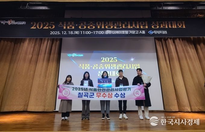 한국시사경제 노승선 기자 | 칠곡군은 18일 경상북도가 주관한 '2025년 식품위생관리 시·군 종합평가'에서 ‘우수상’을 수상하는 영예를 안았다.