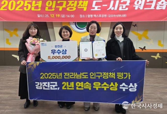 한국시사경제 권충현 기자 | 강진군이 전라남도가 실시한 2025년 인구정책 우수 시·군 평가에서 ‘우수상’을 수상했다.