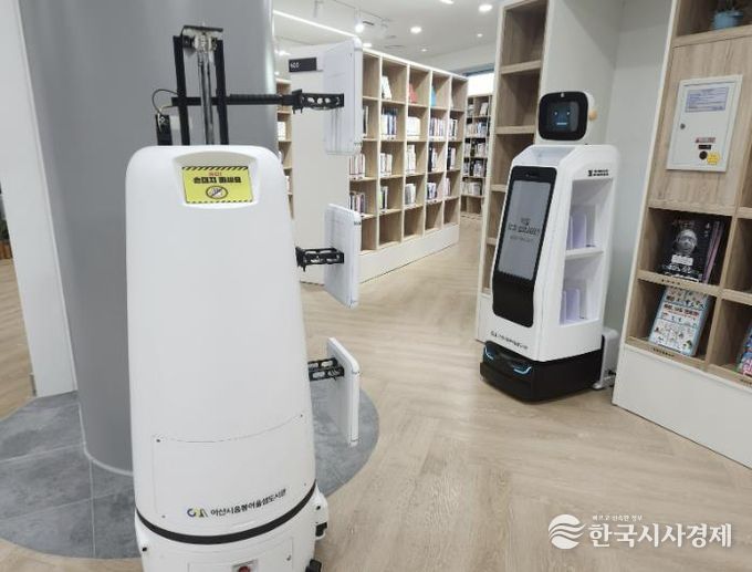 아산시 음봉어울샘도서관은 장서 점검 로봇과 대출·반납 종합 로봇을 실시간으로 연결하는 '이기종 로봇 연계형 스마트 도서관(라이브러리) 시스템'을 신규 도입했다. 서로 다른 기능의 로봇이 정보를 주고받으며 협업하는 시스템을 도서관에 도입한 사례는 이번이 처음이다.