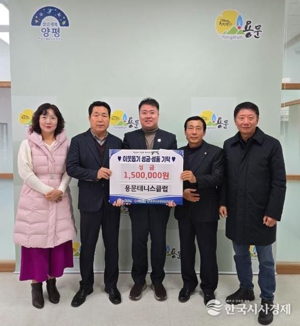 한국시사경제 기동취재팀 | 용문테니스클럽은 연말연시를 맞아 어려운 이웃을 돕기 위해 성금 150만 원을 용문면에 기부하며 지역사회에 따뜻한 나눔을 실천했다.