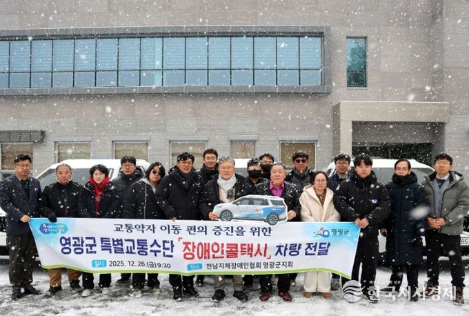 한국시사경제 문화팀 | 영광군은 12월 26일 장애인콜택시 사업 수탁기관인 (사)전남지체장애인협회 영광군지회에 신규 구입한 장애인콜택시 3대를 전달했다.