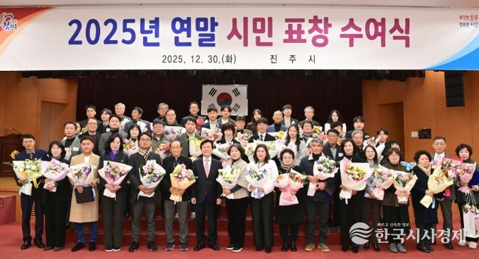 한국시사경제 윤광희 기자 | 진주시는 30일 시청 시민홀에서 지역사회 발전과 선행 활동을 몸소 실천하며 공동체의 귀감이 된 시민 98명을 대상으로 ‘2025년 연말 시민 표창 수여식’을 개최했다.