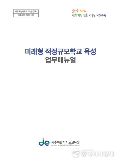 한국시사경제 노승선 기자 | 제주특별자치도교육청은 31일 적정규모학교 육성과 소규모학교의 지속 가능한 학교 운영을 체계적으로 지원하기 위해 ‘미래형 적정규모학교 육성 업무지침서’를 제작하고 도내 작은 학교와 교육지원기관에 보급했다.