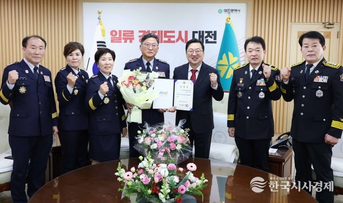 한국시사경제 대전취재본부 | 대전시는 31일 시청 응접실에서 이대식 대덕소방서 남성의용소방대장을 신임 대전의용소방대연합회 남성회장으로 임명했다.