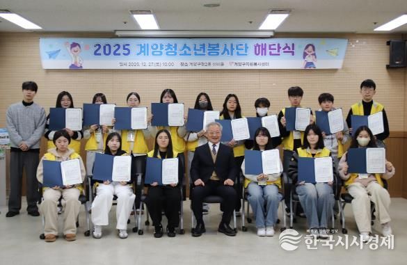 한국시사경제 사회팀 | 인천 계양구 자원봉사센터는 12월 27일 계양구청 신비홀에서 ‘2025 제1기 계양청소년봉사단’ 해단식을 개최하고, 한 해 동안 이어온 활동을 성공적으로 마무리했다.