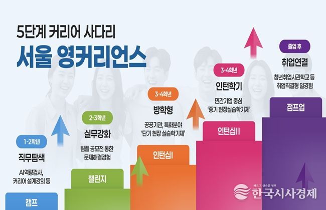 서울시는 지금까지 축적된 성과를 바탕으로 새해부터는 재학시절부터 진로 탐색과 실무 역량을 강화하는 서울 청년을 위한 5단계 인턴십 플랫폼 ‘서울영커리언스’를 본격 추진한다. 실무에 바로 투입할 수 있는 인재를 선호하는 기업 수요와 실무경험을 쌓을 기회가 부족한 청년 간 간극을 좁히기 위해 졸업한 미취업 청년에 맞춰져 있던 기존 일자리 사업을 ‘재학생 중심’으로 재편하는 것이다.