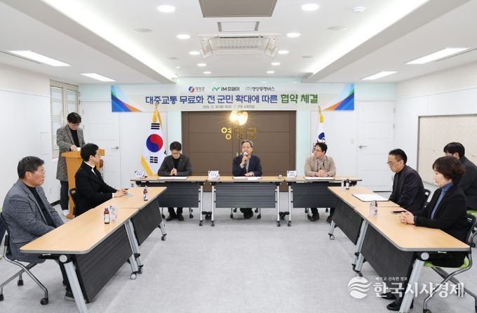 한국시사경제 이정이 기자 | 영양군은 2025. 12. 30. 16:00 영양군청 소회의실에서 영양군⇔iM유페이⇔영양동행버스 간 대중교통 무료화 전 군민 확대에 따른 협약을 체결 했다.