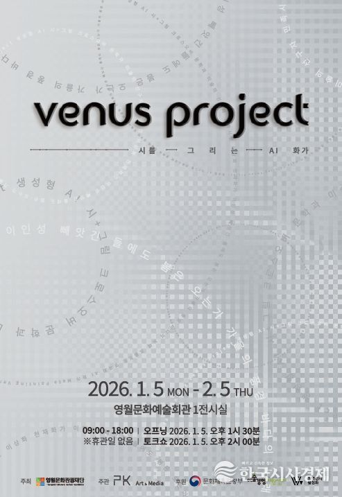한국시사경제 권충언 기자 | (재)영월문화관광재단은 2026년 1월 5일부터 2월 5일까지 영월문화예술회관 제1전시실에서 생성형 AI 기반 디지털 시각예술전 'Venus Project'를 개최한다고 밝혔다.