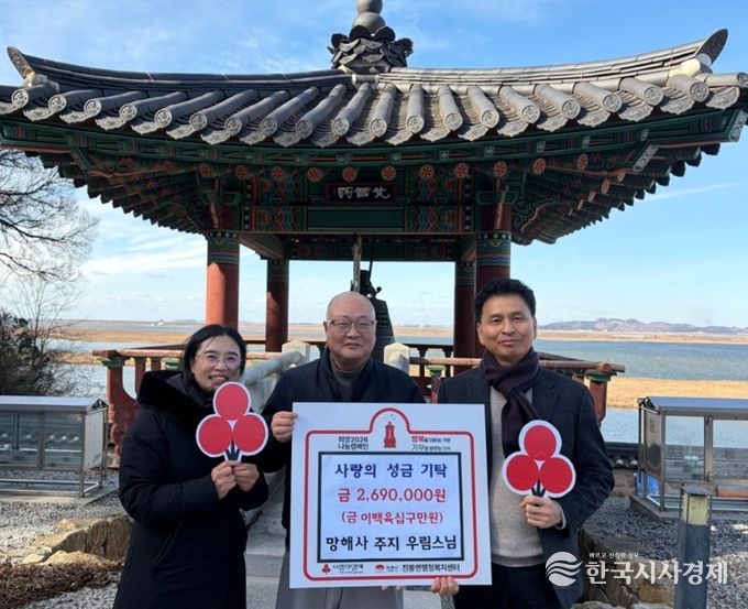한국시사경제 김숙영 기자 | 김제시 진봉면 행정복지센터는 지난 12월 31일, 국가자연유산 명승 김제 망해사(주지 우림스님)가 소외된 계층을 돕기 위해 성금 269만 원을 기탁했다고 밝혔다.