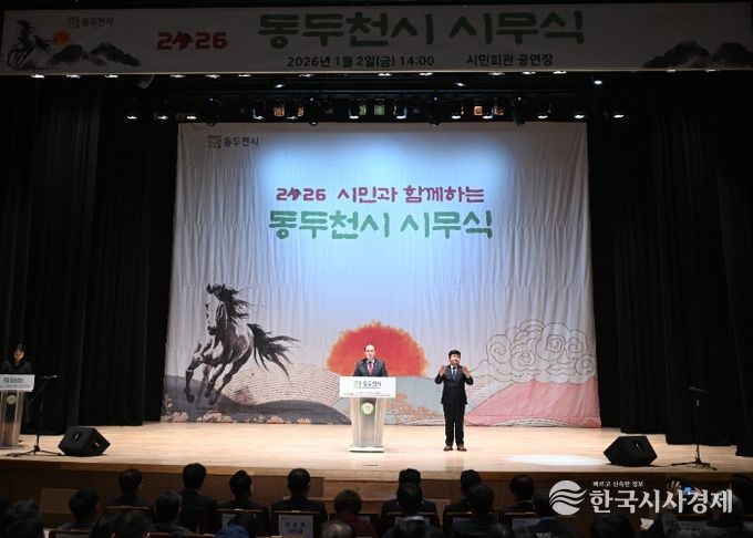 한국시사경제 경기북부취재본부 | 동두천시는 2026년 병오년(丙午年) 새해를 맞아 1월 2일 오후 2시 시민회관 공연장에서 시민과 함께하는 ‘2026년 시무식’을 개최했다.
