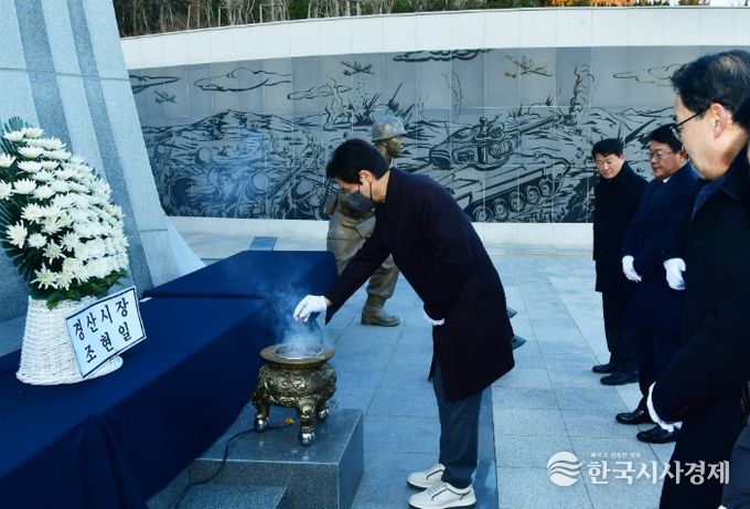 한국시사경제 권충언 기자 | 경산시는 병오년(丙午年) 새해를 맞아 2일 현충공원 충혼탑을 찾아 헌화와 분향, 묵념을 하며 참배했다.