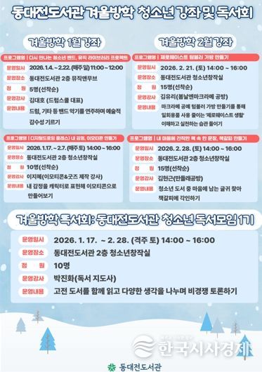 한국시사경제 대전취재본부 | 동대전도서관은 겨울방학을 맞아 오는 1월 4일부터 2월 28일까지 청소년을 대상으로 독서회 및 창작 체험 강좌를 운영한다.
