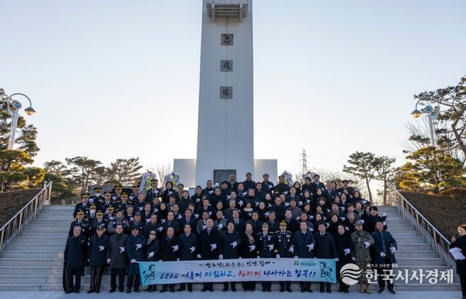 한국시사경제 문화팀 | 칠곡군은 지난 2일 왜관읍 삼청리 소재 충혼탑에서 병오년(丙午年) 새해를 맞이하여 김재욱 군수를 비롯한 이상승 군의장, 보훈단체장, 도·군의원, 기관단체장 등 90여명이 참석한 가운데 '2026년 신년참배'행사를 가졌다.