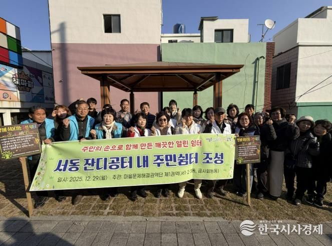 한국시사경제 부산취재본부 | 부산시 금정구 마을문제해결 제1권역단(주관 서3동, 단장 김세현)은 지난 29일, 서동 잔디 공터 일원(서동 533-28 ~ 서동 302-220)에 주민들을 위한 휴식 공간 조성을 완료하고, 2차 합동 환경정비를 추진했다고 밝혔다.