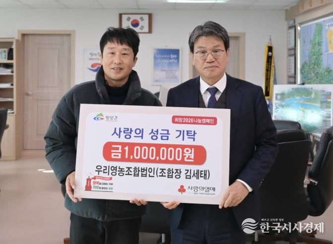 한국시사경제 충남취재본부 | 청양군은 지난 2일 우리영농조합법인이 ‘희망2026 나눔캠페인’을 통해 성금 100만원을 기탁했다고 밝혔다.