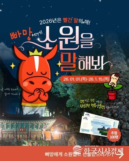 진안군 관계자는 “2026년 빨간 말의 해를 맞아 우리 군의 귀여운 캐릭터 빠망이와 함께 소원을 빌며 희망찬 한 해를 시작하시길 바란다”며, “이번 이벤트를 통해 많은 분이 진안군의 매력을 발견하고 방문하는 계기가 되길 희망한다”고 전했다.