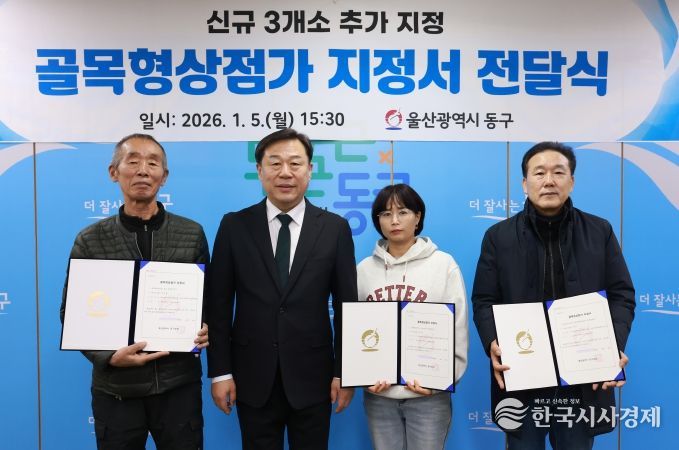 한국시사경제 울산취재본부 | 울산 동구는 1월 5일 오후 3시 30분 구청장실에서 골목상권 활성화를 위한 골목형 상점가 지정서 전달식 및 상인회장 간담회를 개최하고, 동구지역 골목형 상점가 3개소를 추가 지정했다.