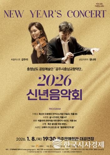 한국시사경제 오영주 기자 | 충청남도 공립예술단인 공주시충남교향악단이 병오년 새해를 맞아 ‘2026 신년음악회’를 1월 8일 오후 7시 30분 공주문예회관 대공연장에서 개최한다.