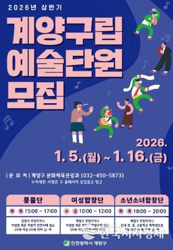 한국시사경제 사회팀 | 인천광역시 계양구는 구민의 문화예술 향유 기회를 확대하고, 지역 문화예술의 지속 가능한 성장을 함께 이끌어 갈 ‘2026년 상반기 계양구립예술단’ 신규 단원을 공개 모집한다고 밝혔다.
