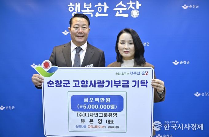 한국시사경제 전북취재본부 | 순창군은 7일 (주)디자인그룹 유영 유은영 대표가 고향사랑기부금 500만원을 기탁했다고 밝혔다.