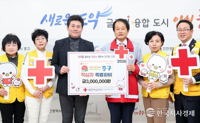 한국시사경제 윤광희 기자 | 인천시 중구는 병오년 새해를 맞이해 대한적십자사 인천지사에 ‘2026년도 적십자 특별회비’ 300만 원을 전달하며 나눔과 상생의 가치를 실천했다고 7일 밝혔다.