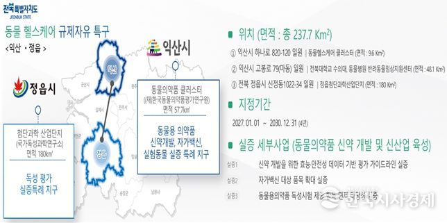 한국시사경제 사회팀 | 전북특별자치도가 차세대 동물의약품 산업 육성을 위한 규제자유특구 실증사업 구체화에 나섰다고 8일 밝혔다.