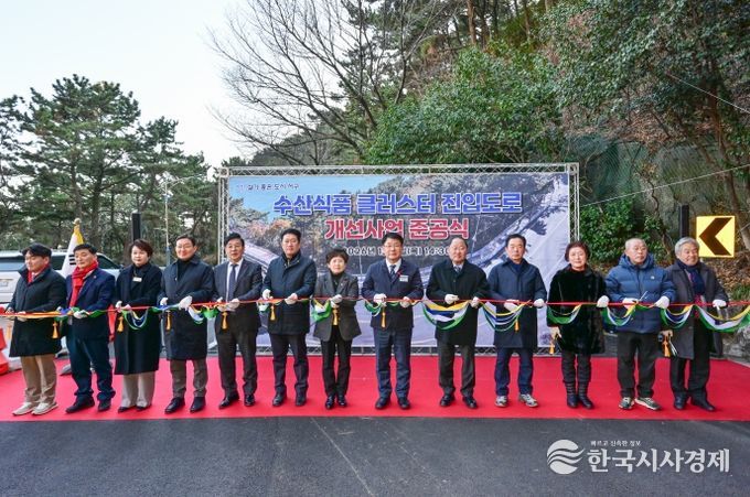 한국시사경제 경제팀 | 부산 서구는 암남동 수산식품 클러스터 진입도로 개선사업을 마무리하고 지난 8일 오후 2시 30분 구청장, 시·구의원, 주민 등 100여 명이 참석한 가운데 준공식을 가졌다.