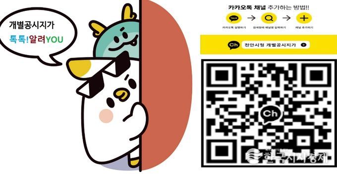 한국시사경제 충남취재본부 | 천안시가 충남 최초로 개별공시지가 정보를 신속하게 제공하기 위해 카카오톡 채널 ‘톡톡! 알려 YOU’를 개설했다고 9일 밝혔다.