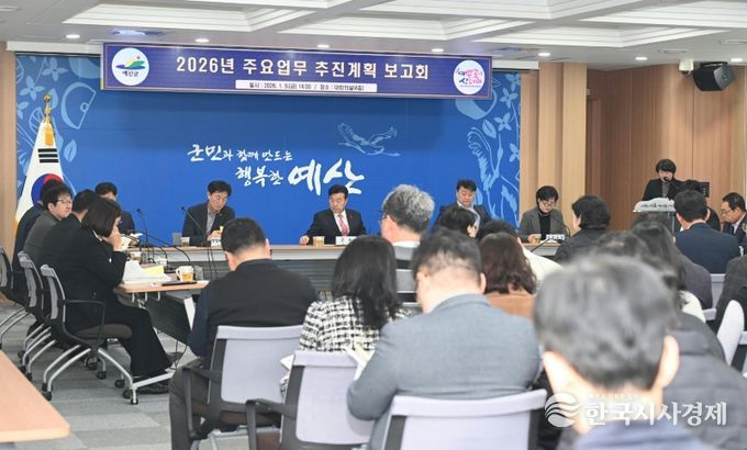 한국시사경제 충남취재본부 | 예산군은 9일 군청 대회의실에서 ‘2026년도 주요업무 추진계획 보고회’를 열고 향후 군정 운영 방향과 분야별 주요 시책을 공유했다.