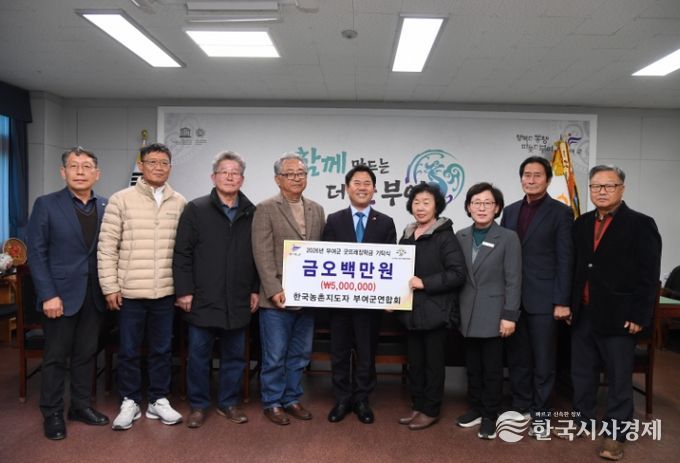 한국시사경제 김태훈 기자 | 부여군농촌지도자회(회장 임병우)는 부여군청을 방문하여 인재 육성을 위한 장학금 5백만 원을 (재)부여군굿뜨래장학회에 기탁했다고 13일 밝혔다.