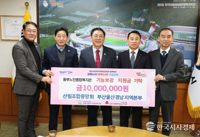 한국시사경제 노승선 기자 | (재)김해시복지재단 김해시동부노인종합복지관(관장 심우영)에서는 지난 12일 산림조합중앙회 부산울산경남지역본부 시설보수 기능보강 지정기탁 금1,000만원 전달식을 개최했다.