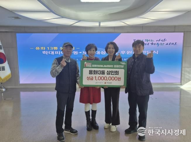 한국시사경제 충남취재본부 | 아산시는 용화13통 상인회가 지역 내 학대 피해 및 보호대상을 위해 후원금을 기탁했다고 밝혔다.