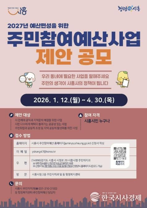 한국시사경제 경기취재본부 | 시흥시는 오는 4월 30일까지 주민들이 직접 사업을 제안하는 ‘시흥시 주민참여예산 제안’을 신청받는다.