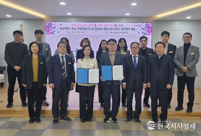 한국시사경제 경북취재본부 | 경상북도영천교육지원청은 1월 13일 영남대학교 부설 지역경제연구소와 지역사회 연계를 통한 경제·금융 교육 활성화를 위한 업무협약(MOU)을 체결했다.