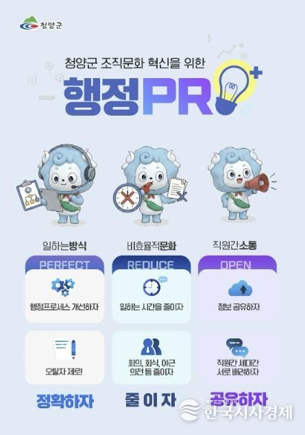 한국시사경제 충남취재본부 | 청양군은 조직문화 혁신과 행정 효율성 제고를 위해 더욱 고도화된 ‘행정PRO+ 운동’을 적극 추진할 계획이라고 16일 밝혔다.