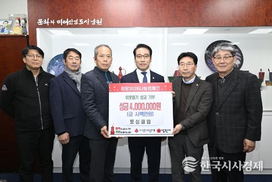 한국시사경제 전북취재본부 | 남원시는 1월 15일, 남원시 토성클럽(회장 김정근)에서 희망2026 나눔캠페인 기간을 맞아 4백만 원의 성금을 기부했다고 밝혔다.
