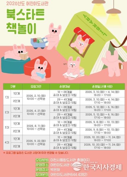한국시사경제 이정이 기자 | 이천시 어린이도서관이 2026년 영유아와 양육자를 위한 ‘북스타트 책놀이’ 프로그램을 운영한다.
