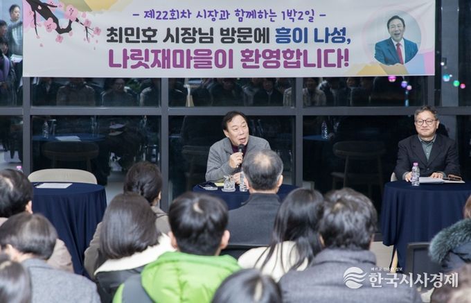 최민호 시장은 올해 첫 1박2일 장소로 나릿재마을2단지를 찾아 주민들과 지역 현안과 발전방안에 대한 진솔한 대화의 시간을 가졌다.